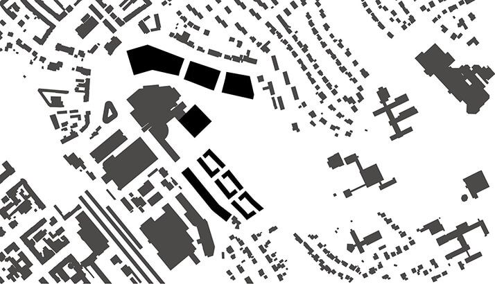 The spatial concept plays with the contrasts of density and expanse. With its clear spatial edges, the development creates new references in the heterogeneous surroundings. The existing rudimentary closed, street-facing development is taken up and proposed as an example for a land-saving future development for the entire quarter.