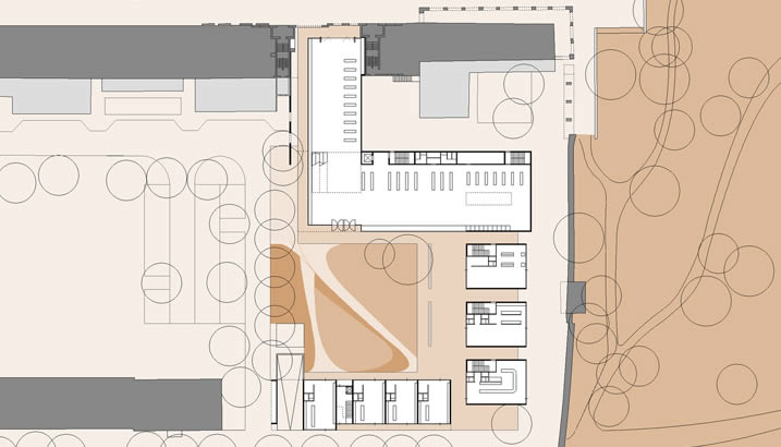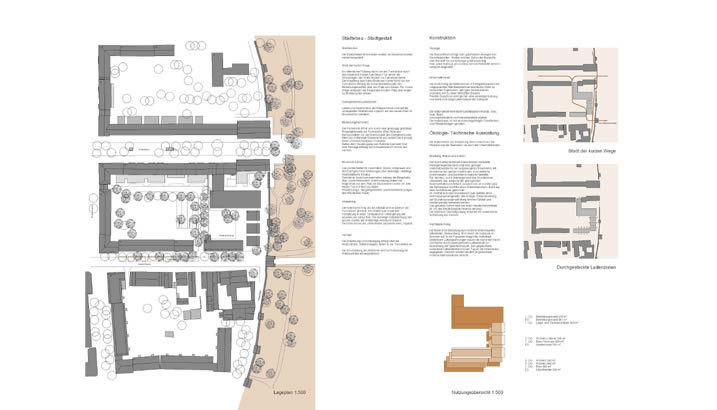 Die vorgefundene Maßstäblichkeit und die orthogonale Blockstruktur der Altstadt wird aufgenommen und mit modernen Mitteln neu interpretiert. Die Durchlässigkeit des Komplexes bietet neue Wegeverbindungen und attraktive Einkaufsmöglichkeiten. Durchgesteckte Ladenzonen sorgen für eine zusätzliche Belebung des Innenhofes und der Geschäfte.