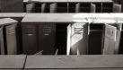 Ein Band von 41 Bildern gleichen Formats wirkt als durchgängiges, verbindendes Element. Innerhalb des Flures liegende Treppen führen dazu, daß sich der Blickwinkel auf die Bilder immer wieder verändert. Die Präsentation der Fotografien als schwarz / weiss- plots unterstreicht die Maschinenästhetik der Motive und den Charakter der Werkstätte.